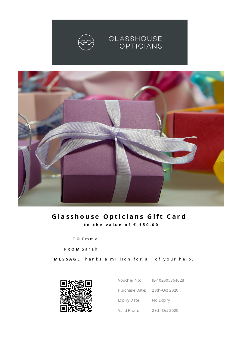 Glasshouse Opticians allows you to purchase instantly printable gift vouchers, special offers and tickets using the Voucher Connect platform.